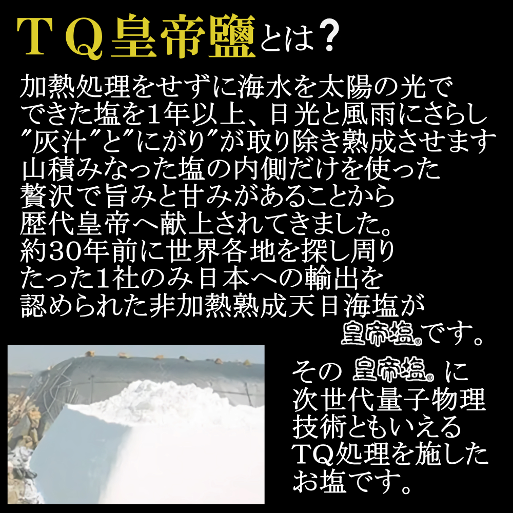 TQ処理はしていませんがTQ皇帝塩の原料となっている皇帝塩は こちらをご確認ください