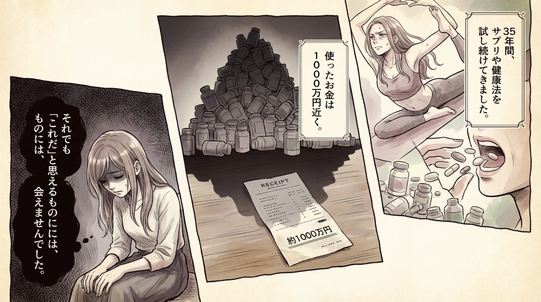 35年間、サプリや健康法を試し続けました。使ったお金は1000万円近く。