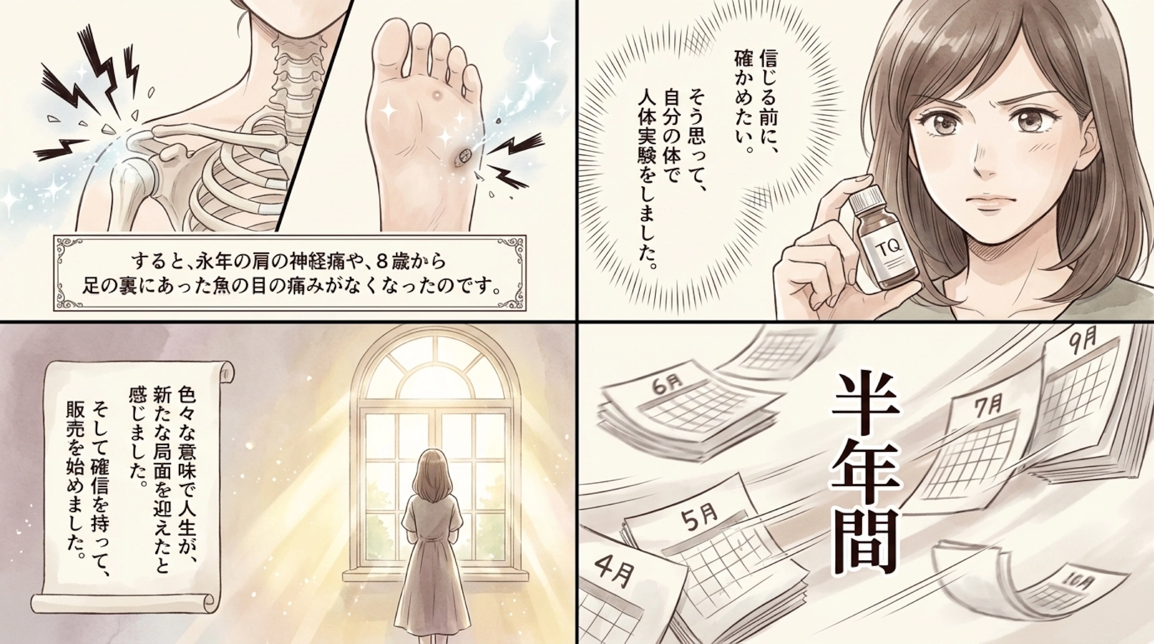 永年の神経痛が消え、8歳から足の裏にあった大きな魚の目の痛みがなくなり、人生が新たな局面を迎えたと感じました。
