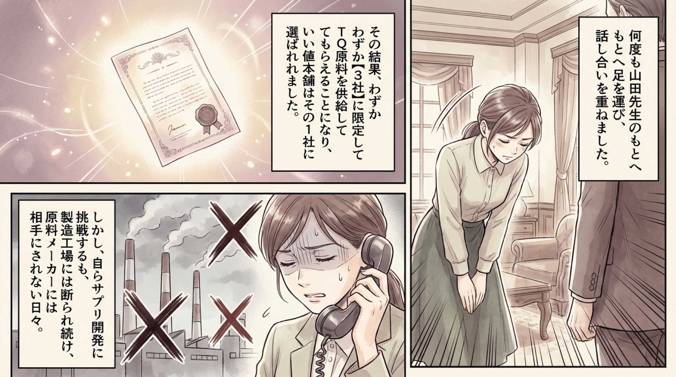 販売を始め、国内代理店売上No.1になった直後。TQ原料の供給停止という絶望的な知らせが届きました。