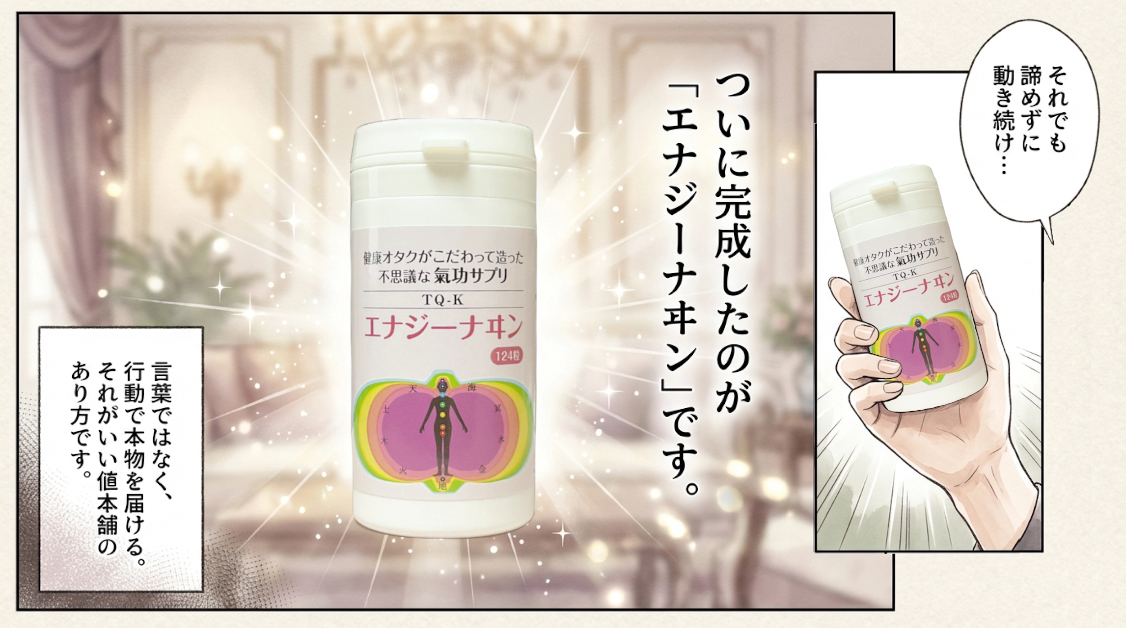 さらに自らサプリを開発。断られ続けても動き続け、「エナジーナヰン」が生まれました。